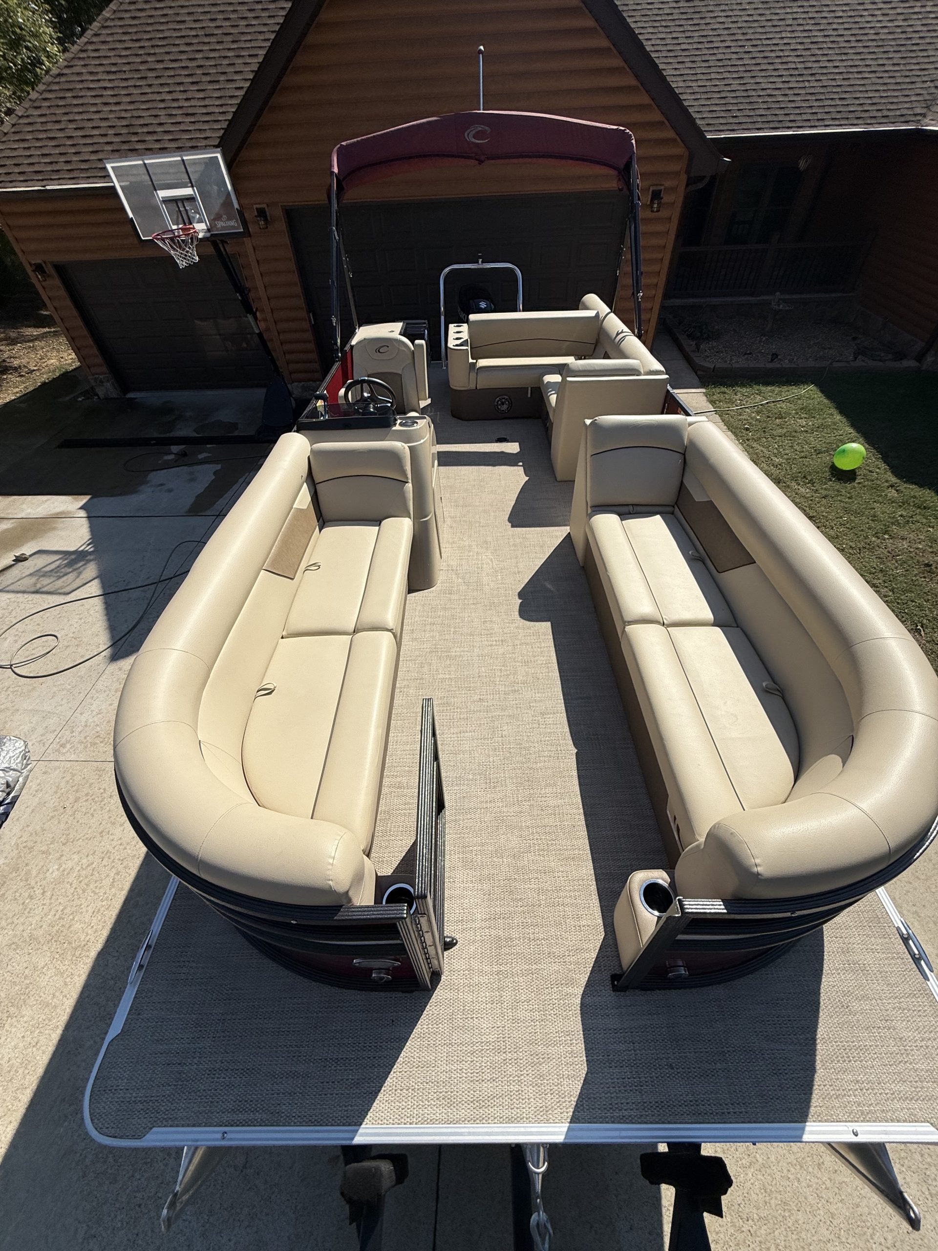 These pontoons offer a 115 HP motor along with bench seats for laying out, radio, depth finder, and soft convertible top. All safety equipment is provided, a tow bar allows the use of water toys such as tubes and skis. Maximum capacity is 11 people. Rental Policies located below.