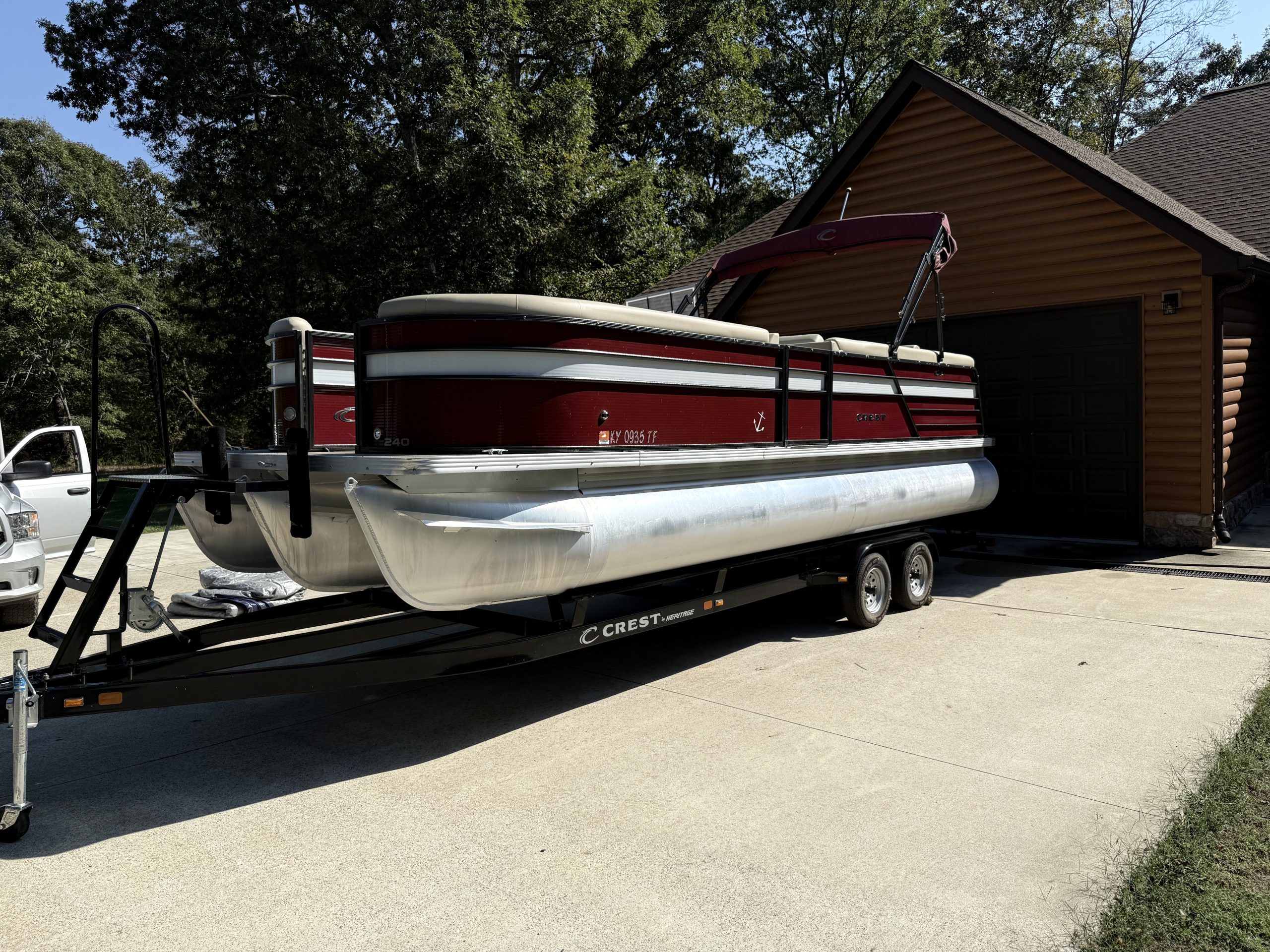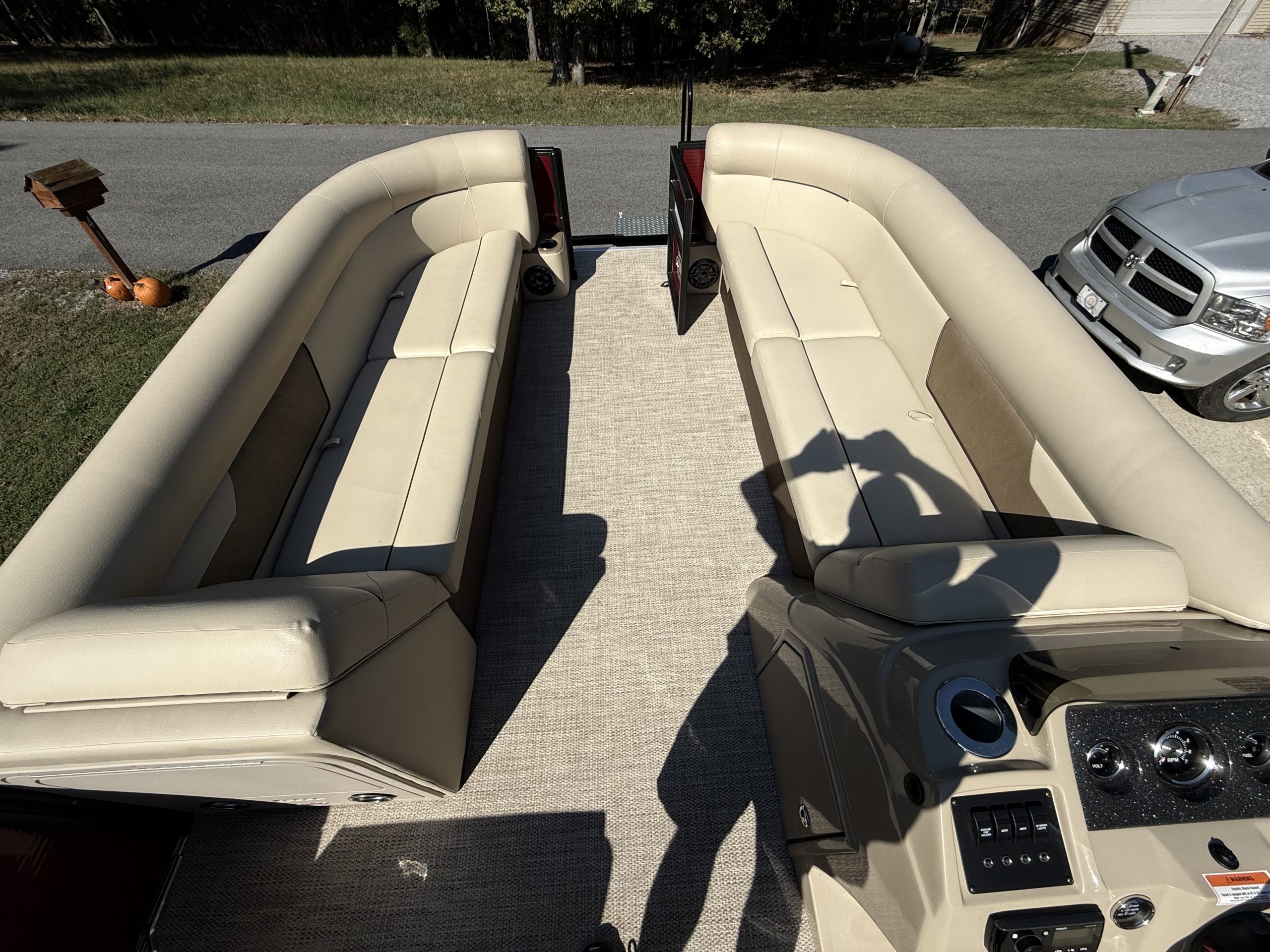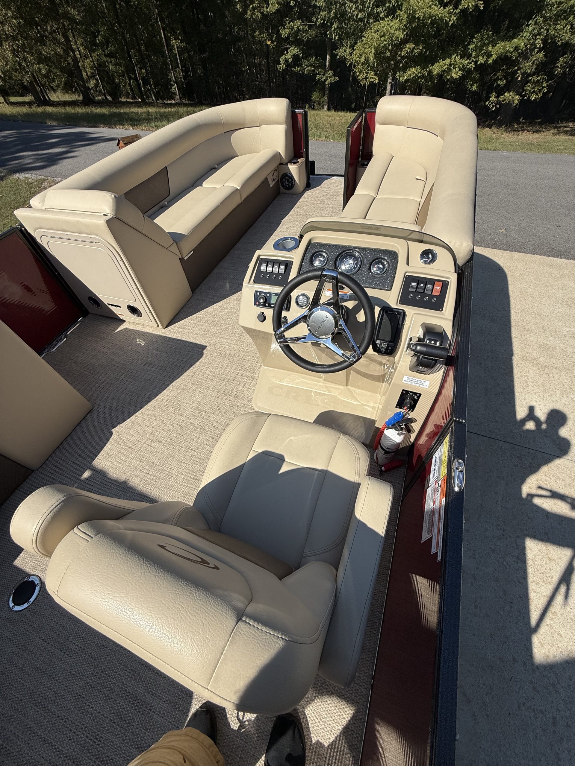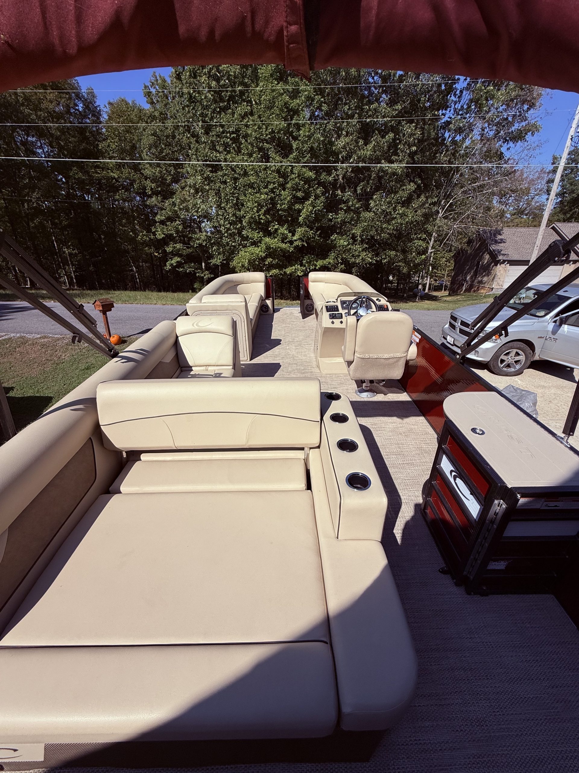 These tritoons offer a 150 HP motor along with a radio, depth finder, and soft convertible tops. All safety equipment is provided, and a tow bar allows the use of water toys such as tubes and skis. Maximum capacity is 15 people. Rental Policies located below.
