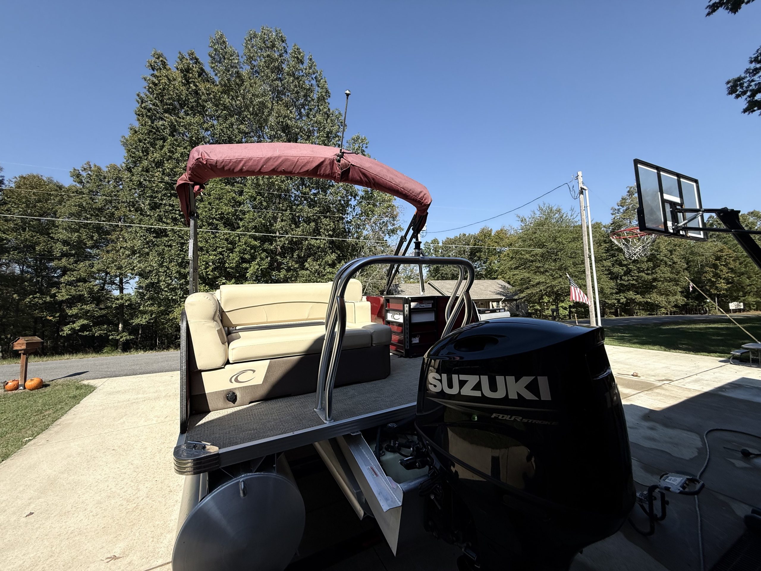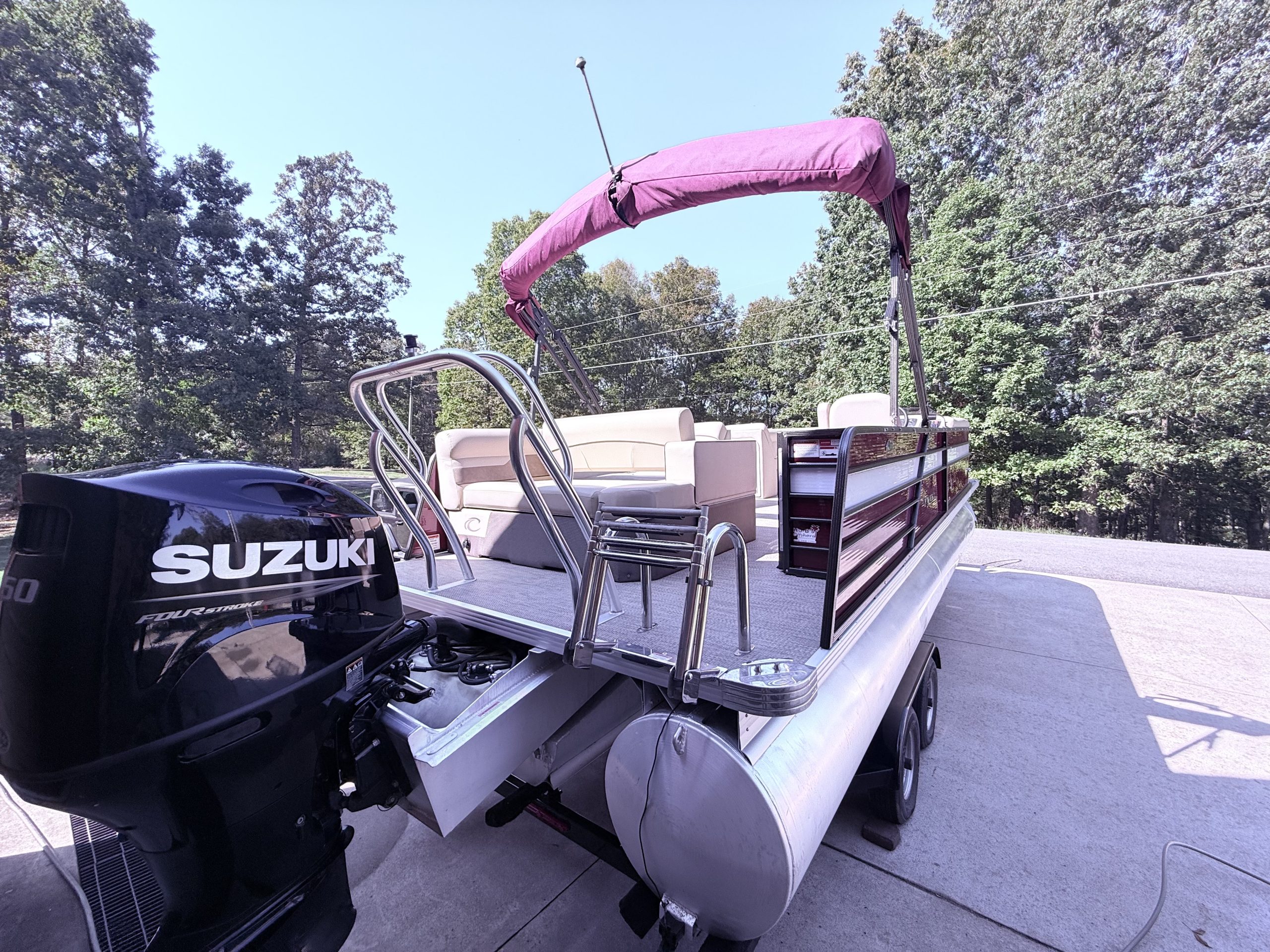These pontoons offer a 60 HP motor along with a trolling motor, three casting seats, dual live wells, depth finder, and soft convertible tops. All safety equipment is provided. Maximum capacity is 8 people. Rental Policies located below.